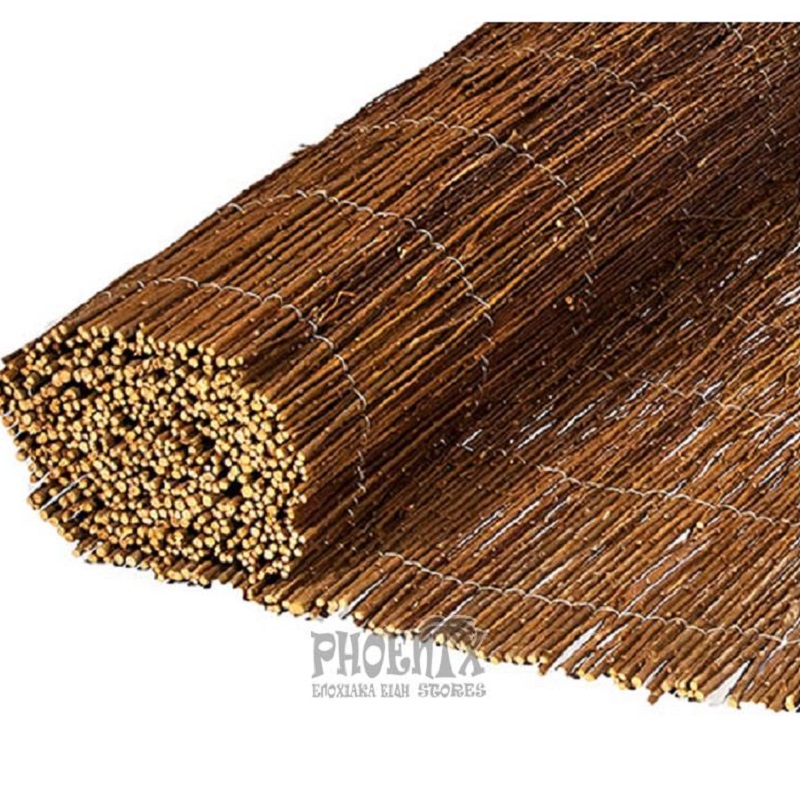 Καλαμωτή ακρόκλαδα ξύλινα λεπτοκαρυάς 200Χ500cm. Πλεγμένη σε ματσάκια, από λεπτές ξύλινες μασίφ βέργες λεπτοκαρυάς, με γαλβανισμένο σύρμα κάθε 13-15cm περίπου, σε χρώμα φυσικό καφέ.
