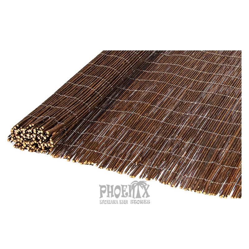 Καλαμωτή από ξύλινες βέργες μασίφ λεπτοκαρυάς, διάσταση 200Χ500cm και διαμέτρου 8-10mm, σε καφέ φυσικό χρώμα, πλεγμένες με γαλβανισμένο σύρμα, κάθε 10-12cm περίπου