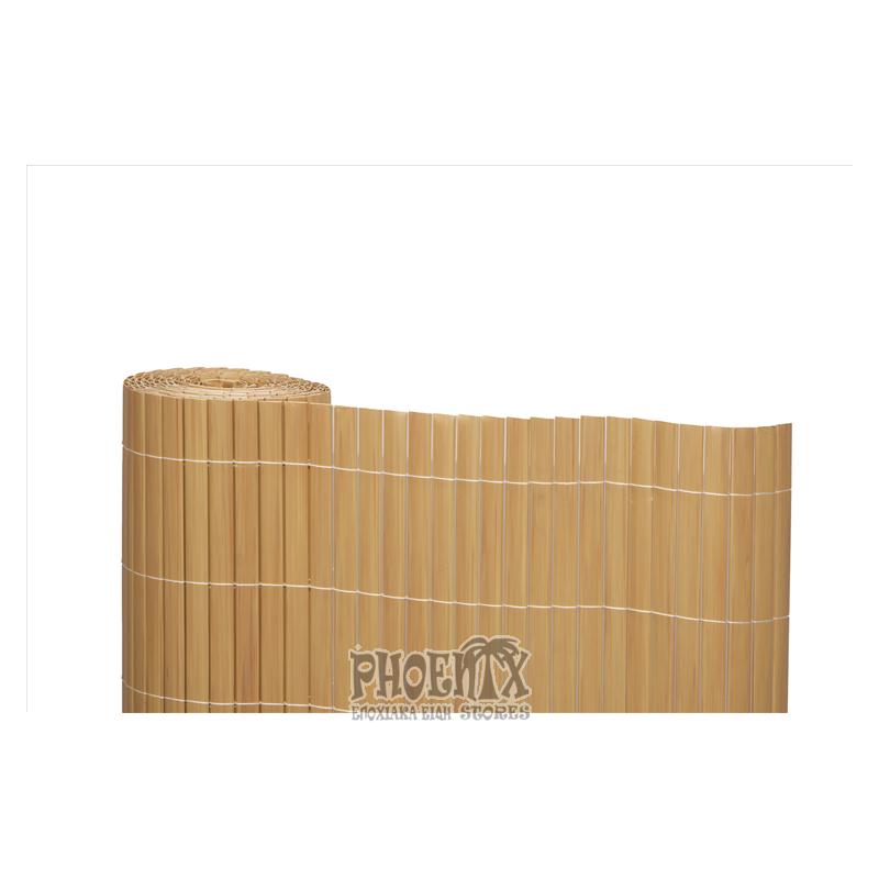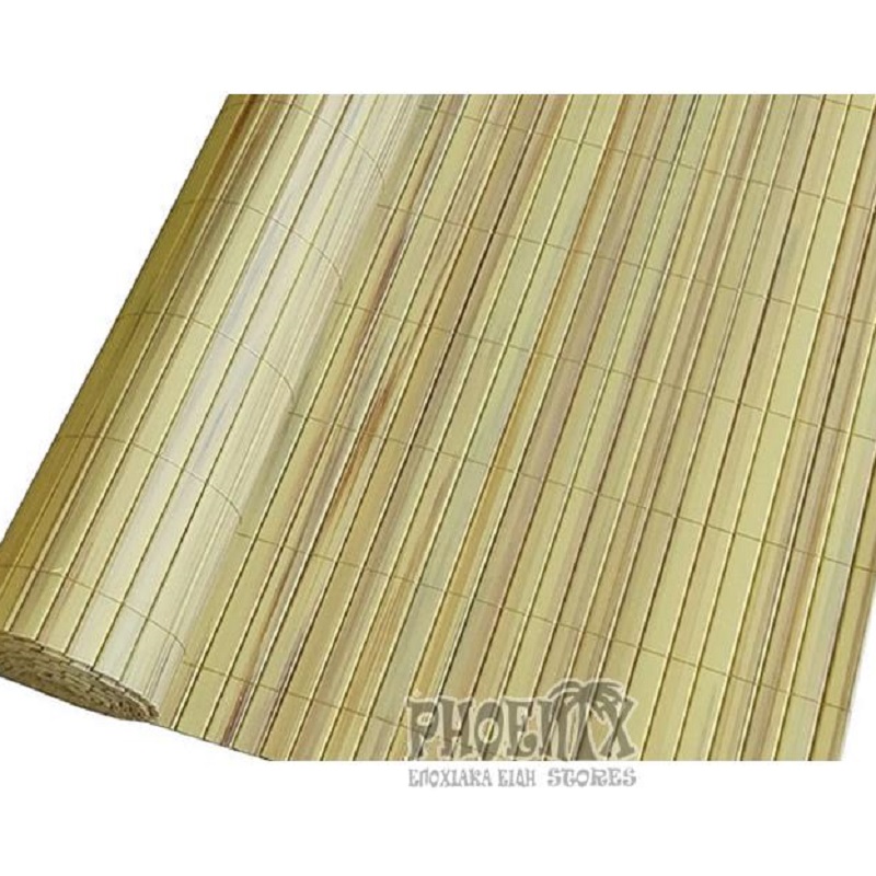 Καλαμωτή σε μπεζοκίτρινο χρώμα (απομίμηση καλαμιού) που κατασκευάζεται από ολόκληρους λεπτούς σωλήνες P.V.C. σε 2cm φάρδος και διάσταση 150Χ300cm. Προσφέρει την μεγαλύτερη πυκνότητα κάλυψης απ’ όλα τα είδη καλαμωτή, αφού έχει την ‘’τελειότητα’’ του βιομηχανοποιημένου προϊόντος. Πλένεται και προσφέρει ακόμα μεγαλύτερη θερμομόνωση, λόγω του κενού αέρα που υπάρχει στις σωλήνες, είναι ευέλικτη γιατί πλέκεται με συνθετικό νήμα μεγάλης αντοχής κάθε 10cm. Ιδανική για μπαλκόνια, πέργολες, περιφράξεις.