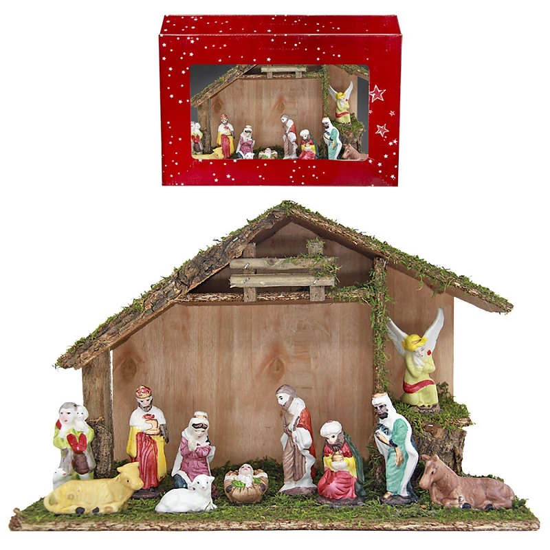 Χριστουγεννιάτικη Φάτνη Δέντρου Ξύλινη 37 Χ 24cm με 11 φιγούρες.