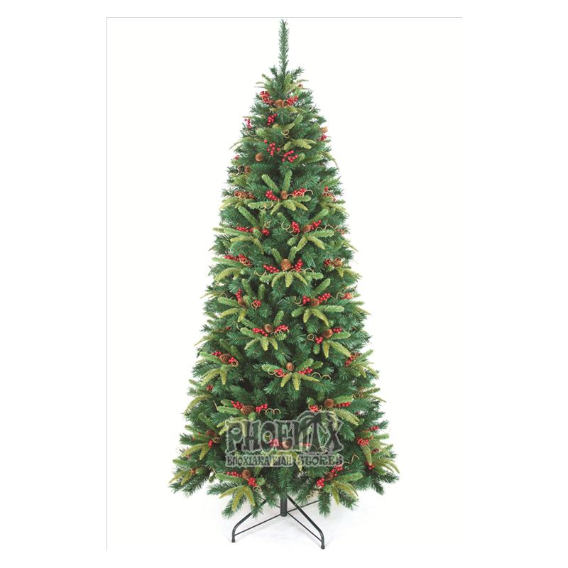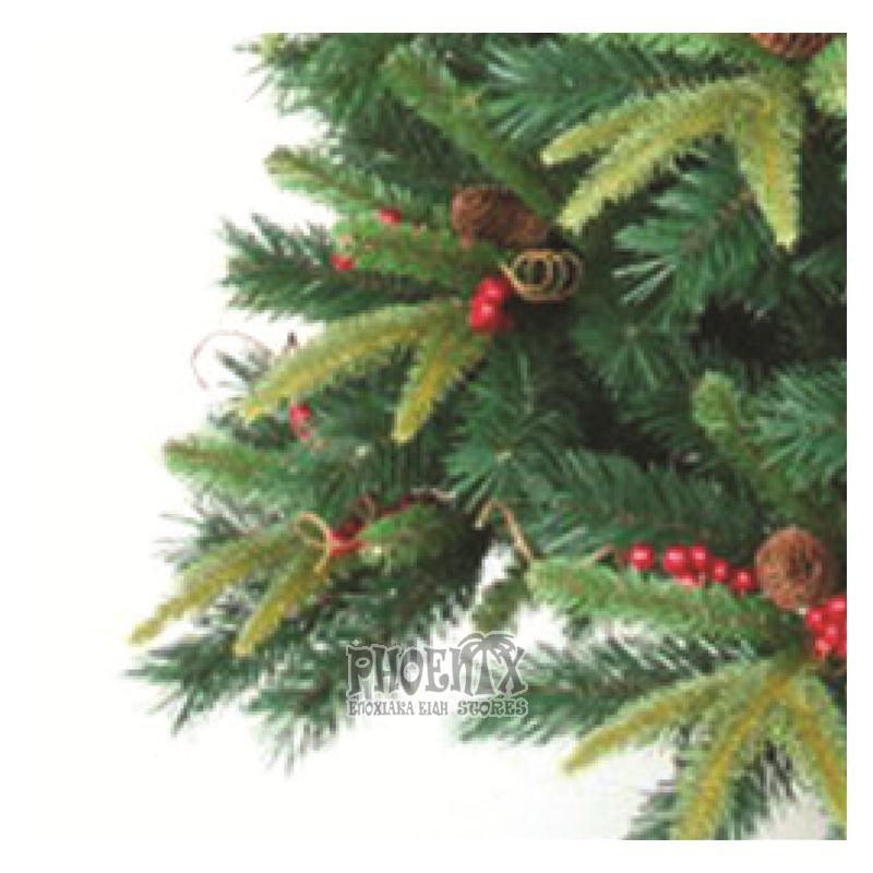 Χριστουγενιάτικο Δέντρο Forbes Slim Fir 240 εκ. Χριστουγεννιάτικο Δέντρο στενό slim 240 εκατοστά ύψος, με ενσωματωμένα κλαδιά σε πράσινο χρώμα. Πολύ όμορφο χριστουγεννιάτικο δέντρο στενό slim, με πολύ πυκνό ανάμεικτο φύλλωμα PVC εώς τη βάση του, στολισμένο με γκι και κουκουνάρια, σε διαστάσεις από 180 εώς 240 εκατοστά ύψος. Με τα κατάλληλα χριστουγεννιάτικα φωτάκια, στολίδια και μπάλες, μπορείτε να φτιάξετε ένα φανταστικό χριστουγεννιάτικο δέντρο.