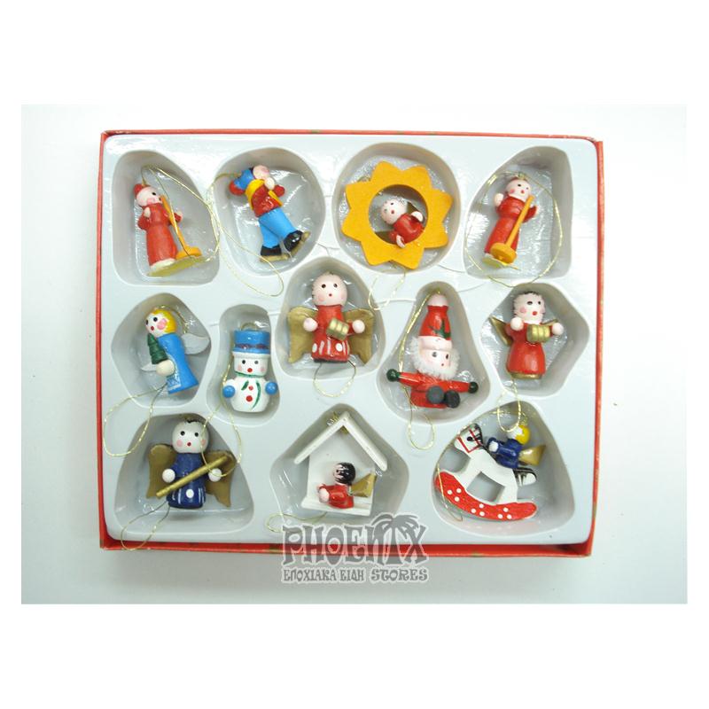 Χριστουγεννιάτικα στολίδια ξύλινα ΣΕΤ 12 τεμαχίων