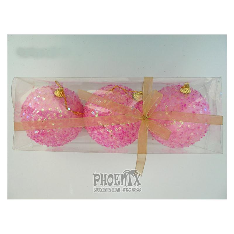 Χριστουγεννιάτικες Μπάλες ροζ 10 εκ. Σετ 3