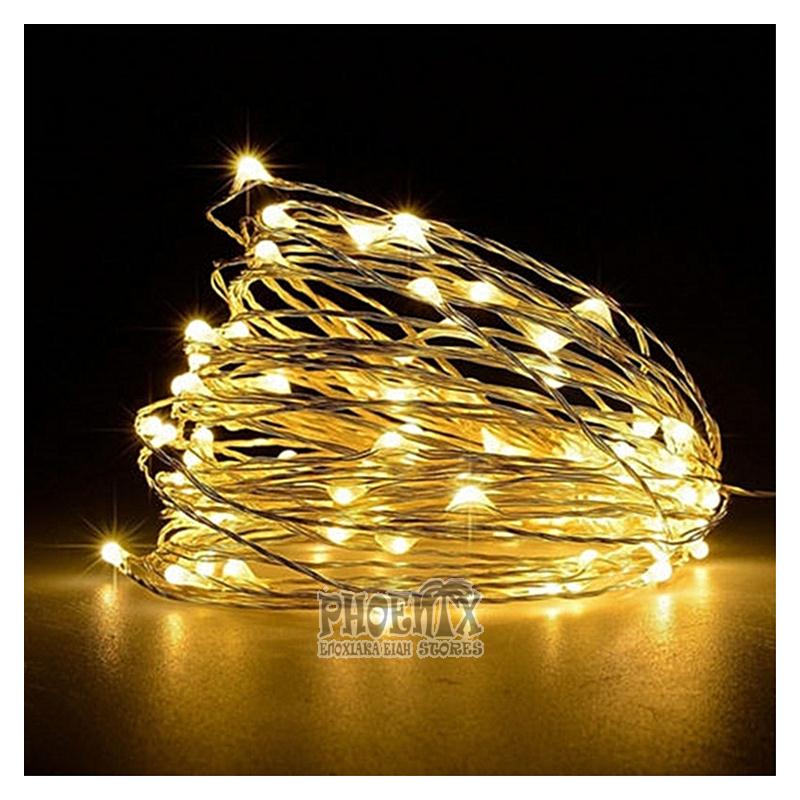 Χριστουγεννιάτικα Φωτάκια COPPER Λευκά Θερμό Μπαταρίας 50 LED Σταθερά. Φωτάκια microled, 5 μέτρα μήκος.