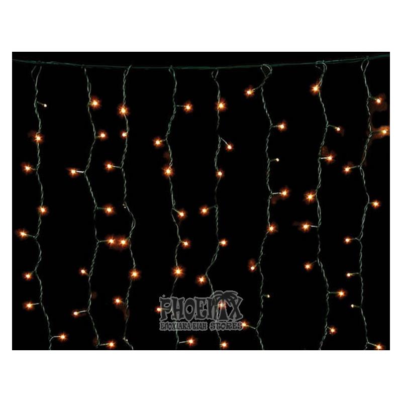 Χριστουγεννιάτικα Φωτάκια Κουρτίνα (Συμμετρική) 100 LED Λευκά (Θερμό) Εξωτερικού χώρου με μετασχηματιστή. Κουρτίνα led επεκτεινόμενη με πράσινο καλώδιο και θερμό led.