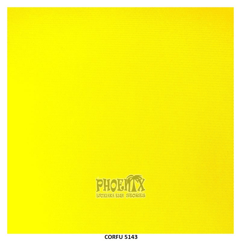 Δερματίνη CORFU ελληνικής παραγωγής, εξαιρετικής ποιότητας, με μέγιστη αντοχή στον ήλιο, στο χλώριο και στο αλάτι, κατάλληλη για σκάφη, και κάθε είδους μαξιλάρι εξωτερικού χώρου (μαξιλάρια ξαπλώστρας παραλίας, πουφ, ειδικές κατασκευές. Φάρδος 140cm, βάρος 650gr ανά τετραγωνικό μέτρο.